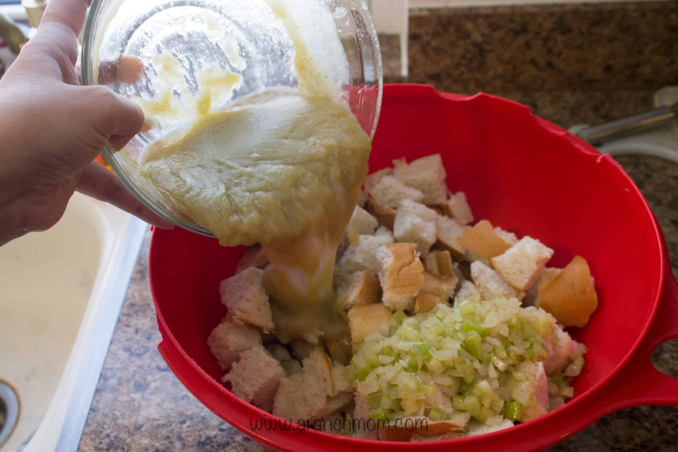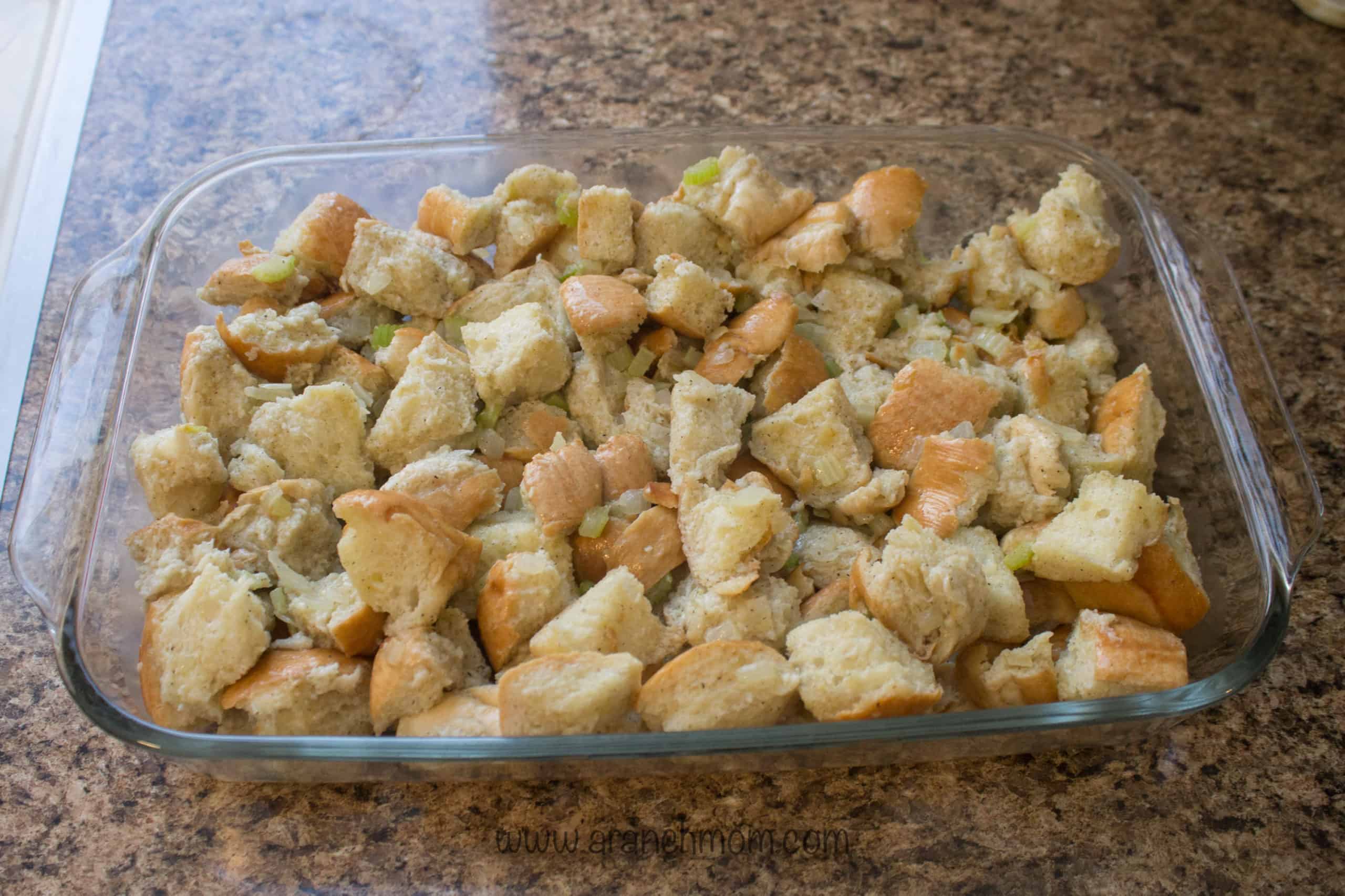 This stuffing recipe is meant to be chewy, not-soggy cubed bread. It is not the gooey stuffing that many people associate with turkey stuffing.