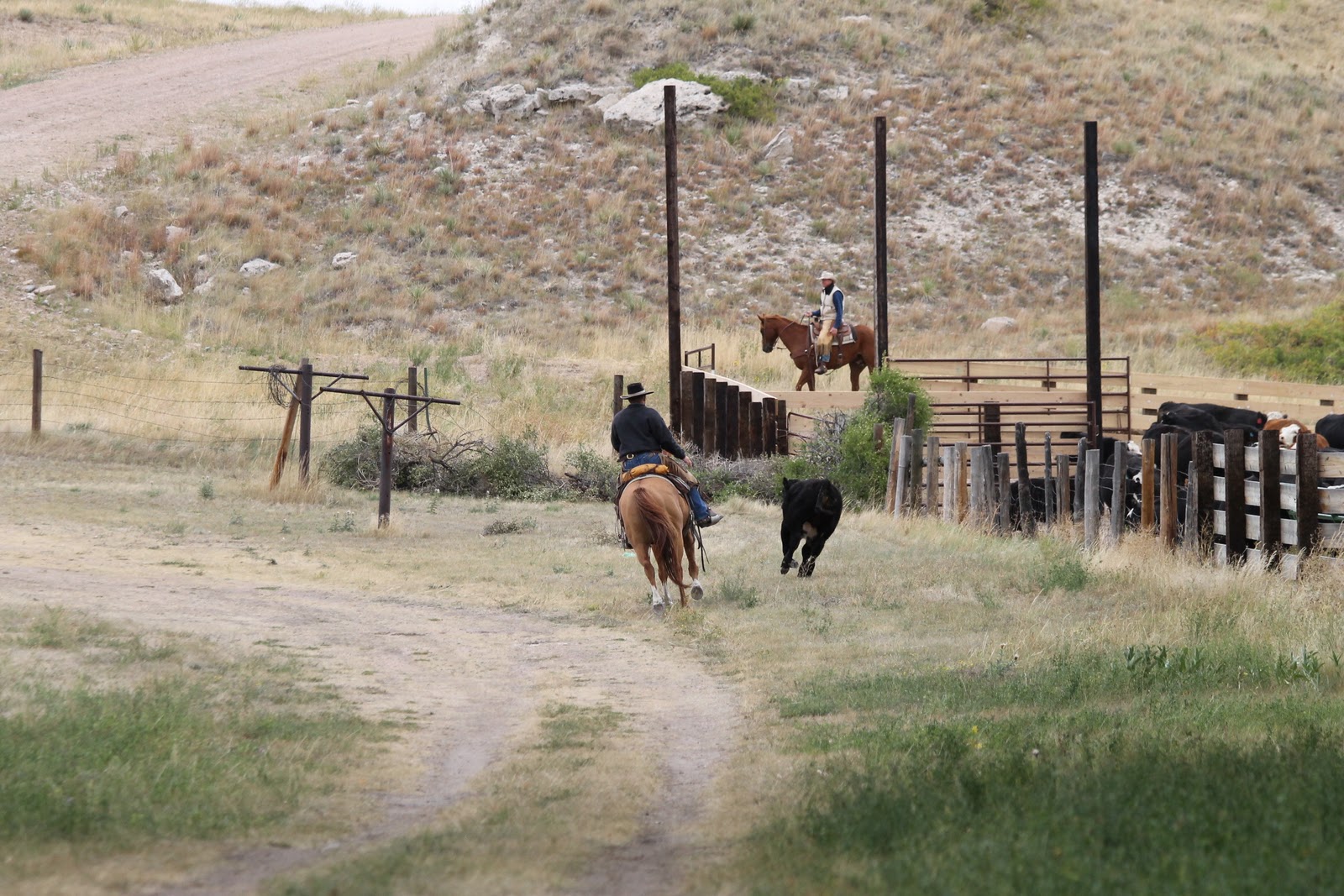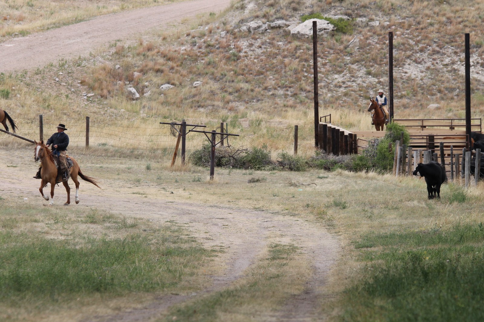 Down the lane to the corrals.