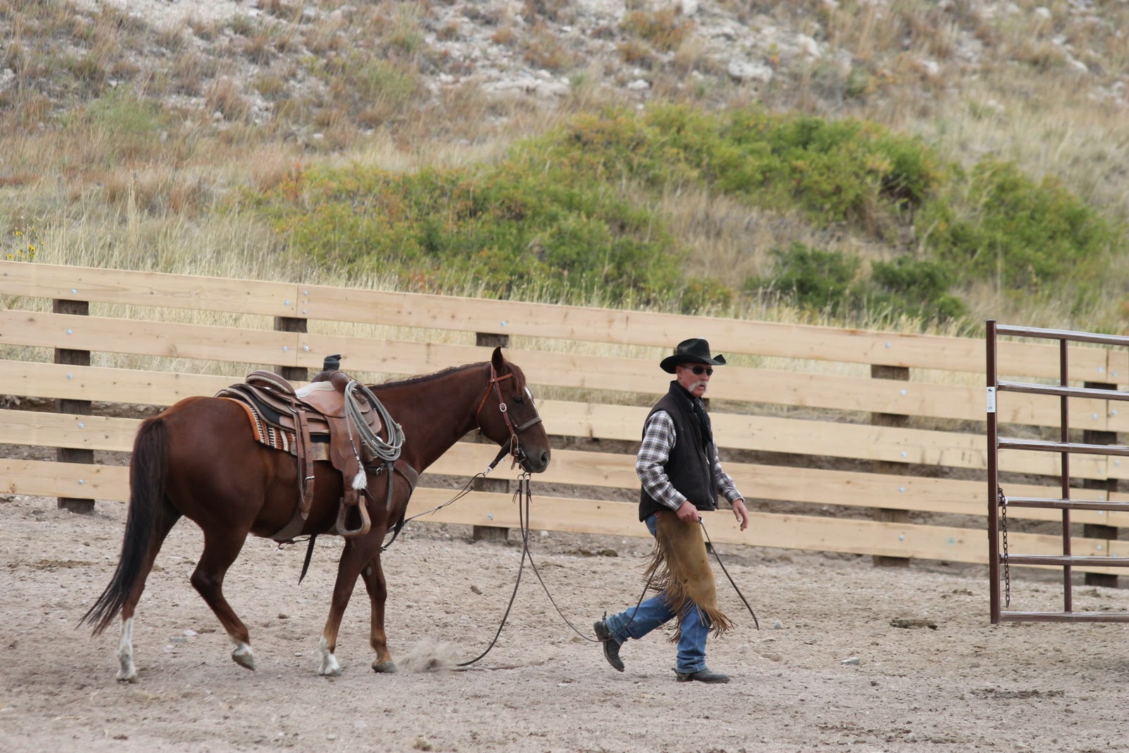 Look at all that gleaming new corral fence! My Cowboy had been working on it quite a few days...along with some other guys.(OK, it doesn't really gleam - but it almost does, its so new and straight!)
