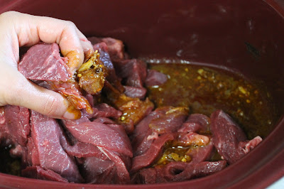 One of my favorite easy meals are these crockpot venison fajitas. I put them in the slow-cooker in the morning, and by noon (or supper, on low) the meat is ready to be wrapped up in tortillas. Plus, it's one of the meals that the whole family enjoys, so no forcing kids to eat, haha!