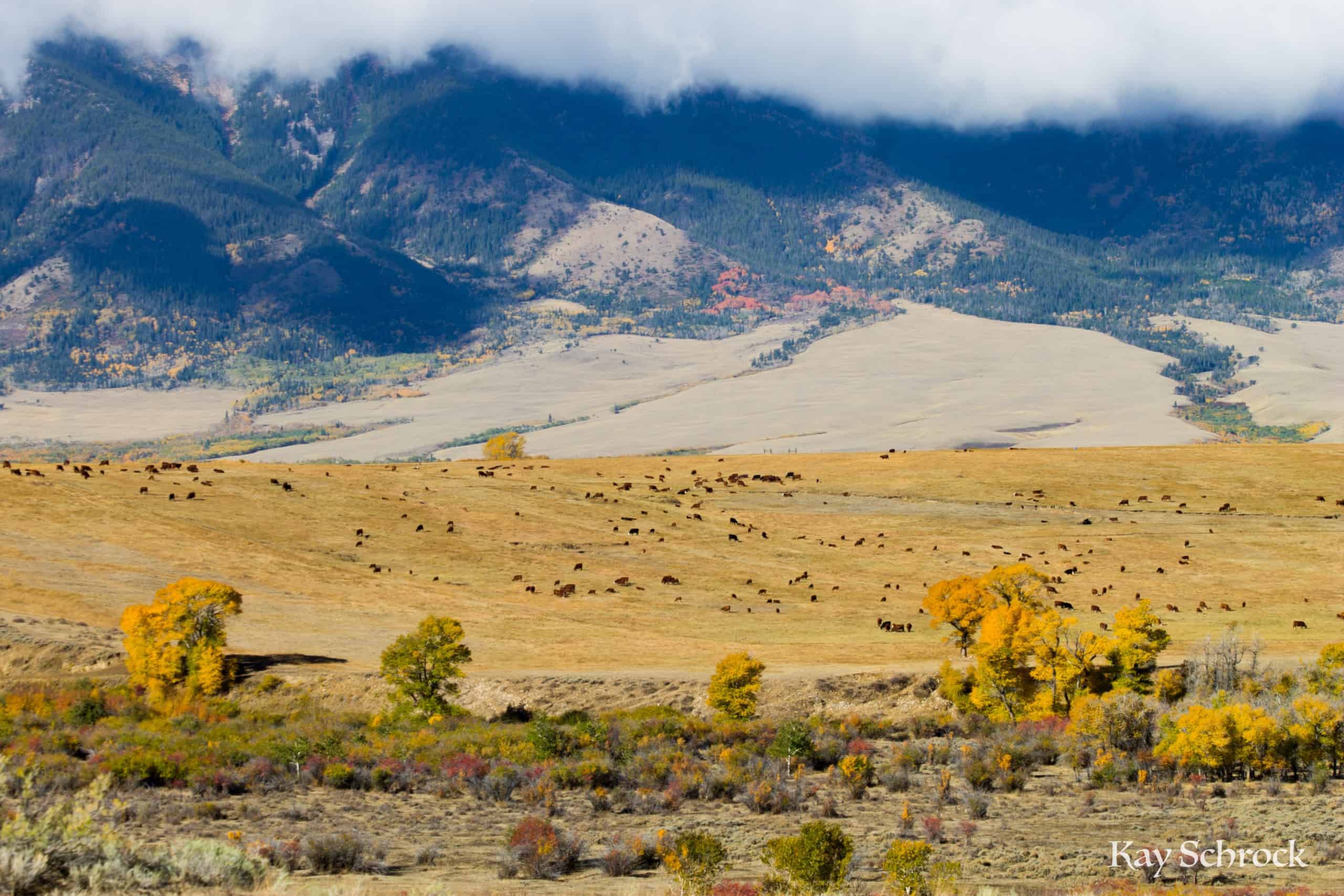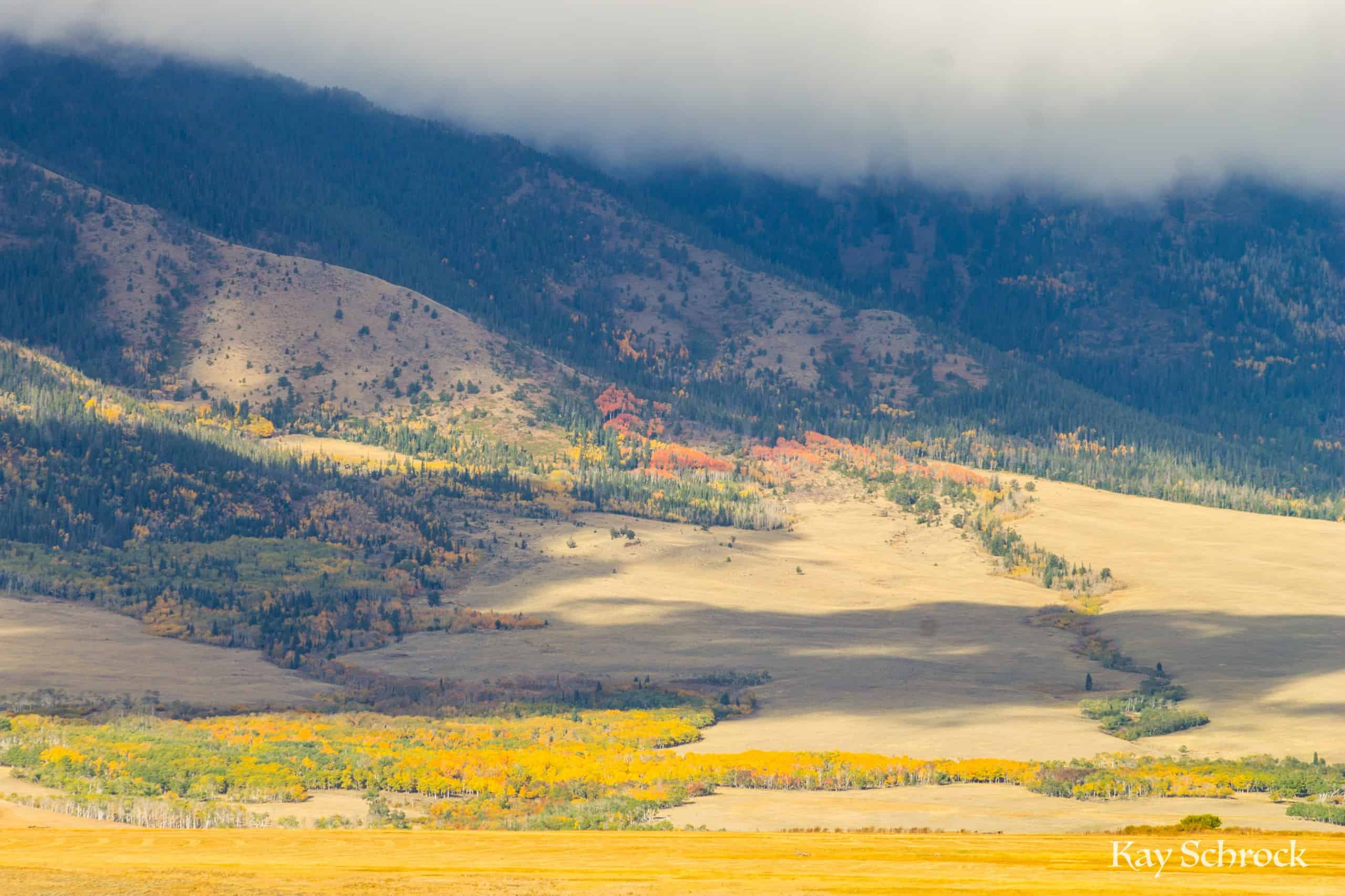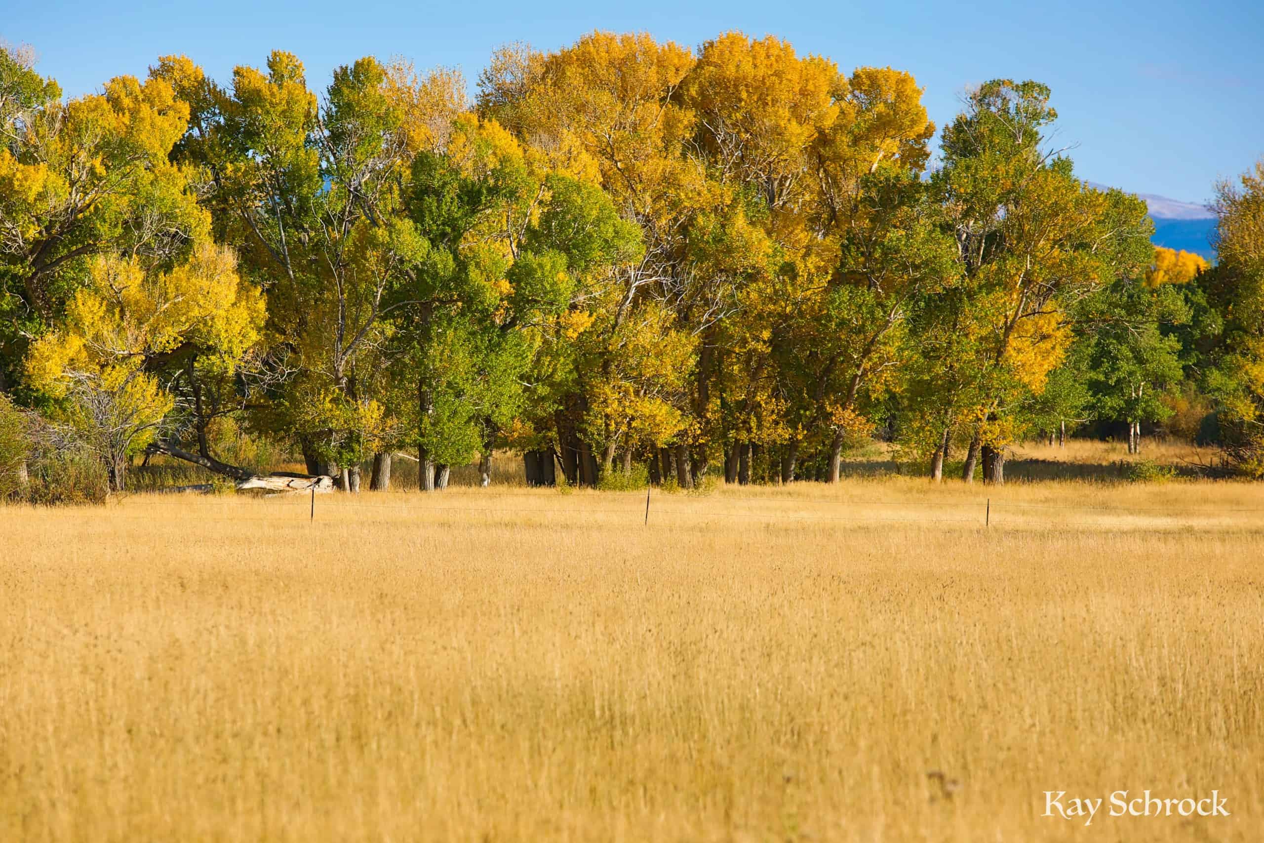 We live along the Medicine Bow River, and the river bottoms are full of cottonwood trees, aspen groves, and willow bushes. They all turn golden yellow in fall, and this year was outstanding! It looked like a river of gold, winding its way through the high prairie.