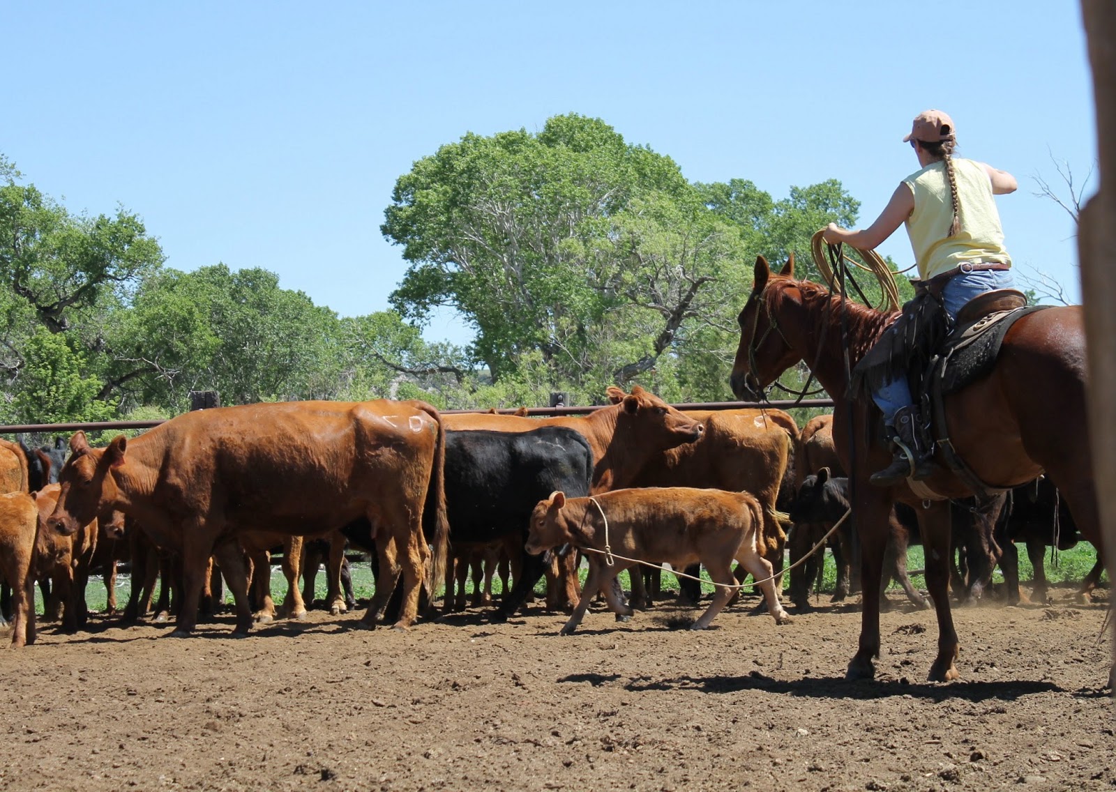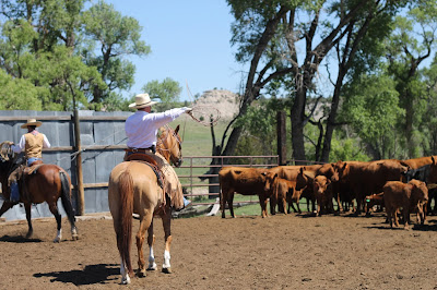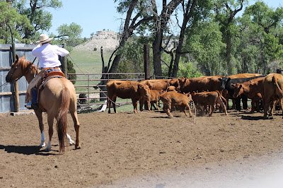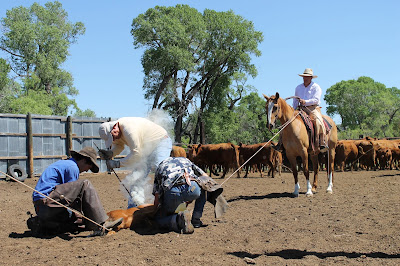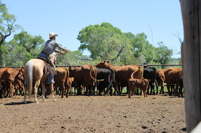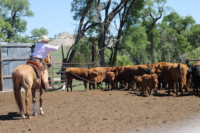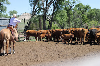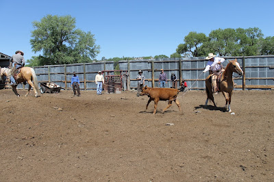 My friend Karmen! She's quite a handy lady. She has a toddler and a baby. She made lunch for about 20 people,(with some help from her sister-in-law) and she was riding and roping with the crew.