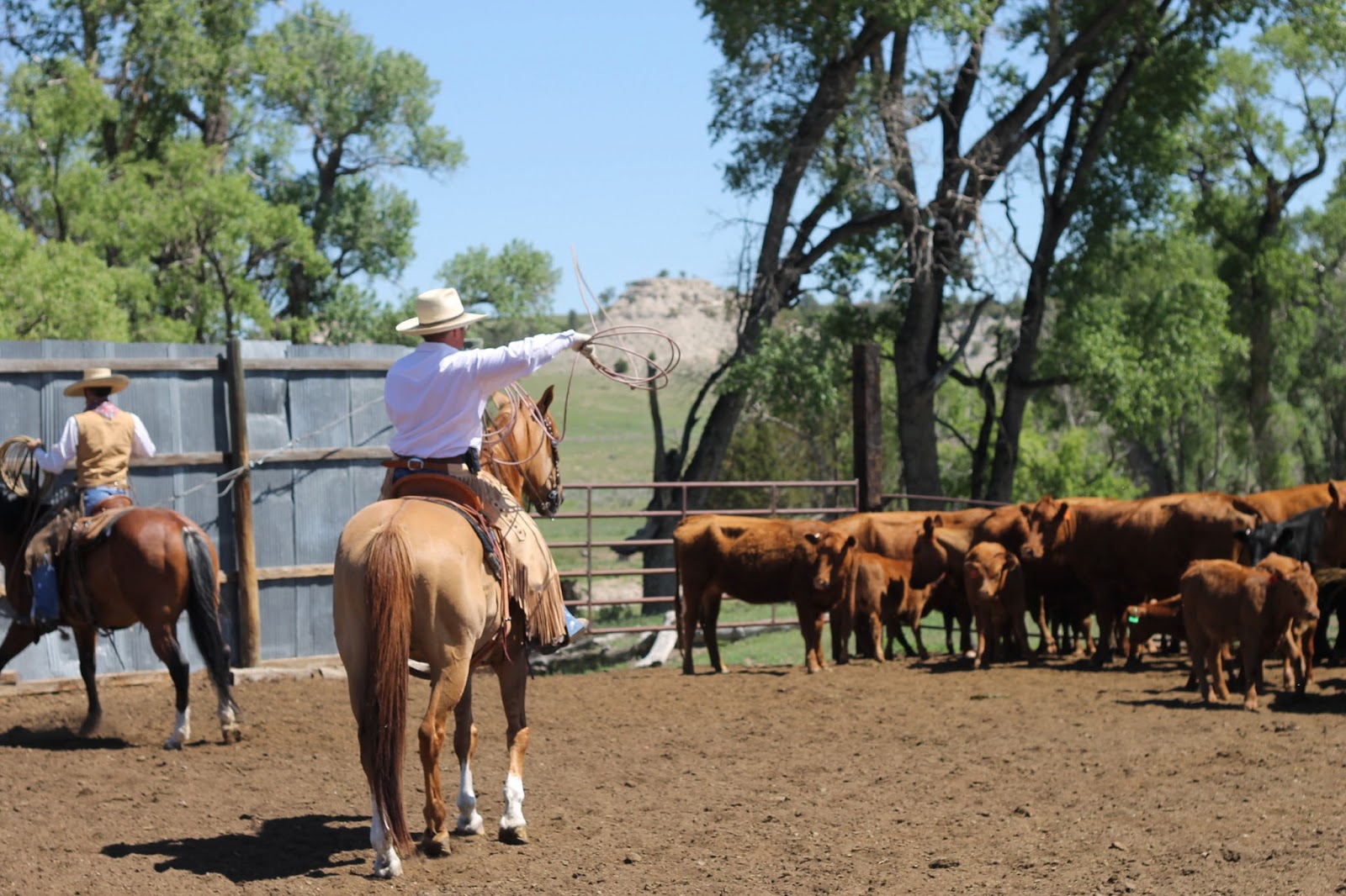 Our good friends had a branding yesterday. They head and heel their calves, so of course it was a lot of fun! And they have two stinkin' cute lil boys, so double the fun for me! 🙂