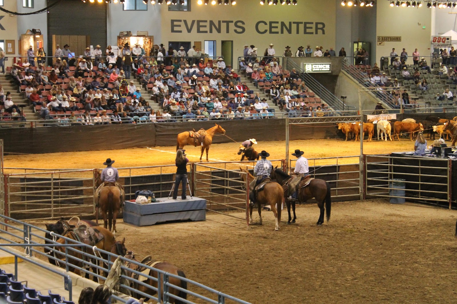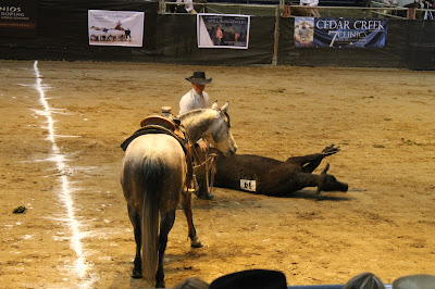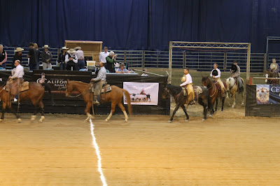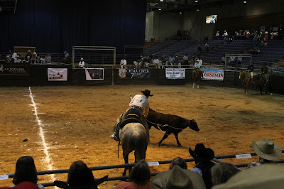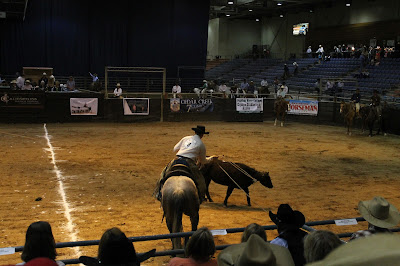 The arena. They only used about 1/4 of the arena for the actual competition, andother 1/4 for warm-up space, and the rest was curtained off. Huge place! The spectators you see here comprised about 3/4 of the total crowd. It was nice that there weren't too many people. My Cowboy is in this photo - can you spot him? 🙂